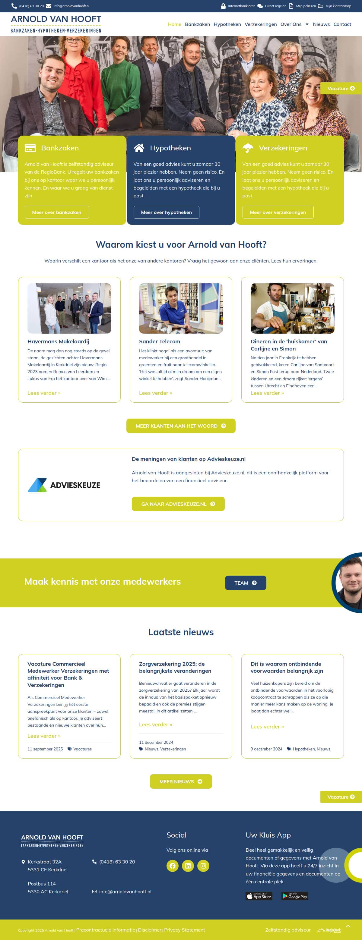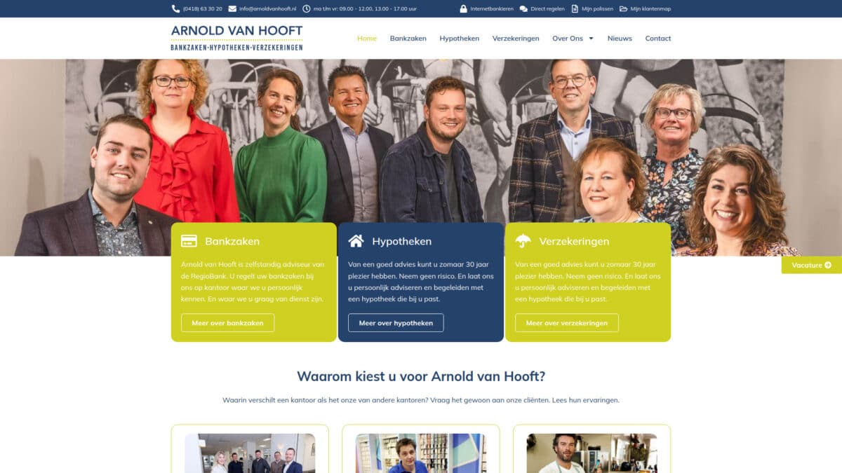 Het resultaat is een professionele online presentatie die past bij de missie van Arnold van Hooft: dichtbij staan, eerlijk adviseren en zaken simpel maken voor de klant.